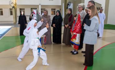 تابعت وزيرة التربية والتعليم العالي الدكتورة ريما كرامي والوفد المرافق برنامج زيارتها الرسمية إلى سلطنة عمان ، وزارت مدرسة القيم للتعليم الأساسي حيث استقبلتها إدارة المدرسة ثم استقبلها التلامذة باللباس التقليدي الوطني في الملعب ، واستمعت منهم إلى شروحات عن الأنشطة التي ينفذونها والتي تعكس مضامين المناهج والثقافة والفنون والرياضة ومن بينها الرسم والموسيقى ولعب كرة القدم والجمباز والكاراتيه ، والقوا القصائد وقدموا لها باقات الورد.