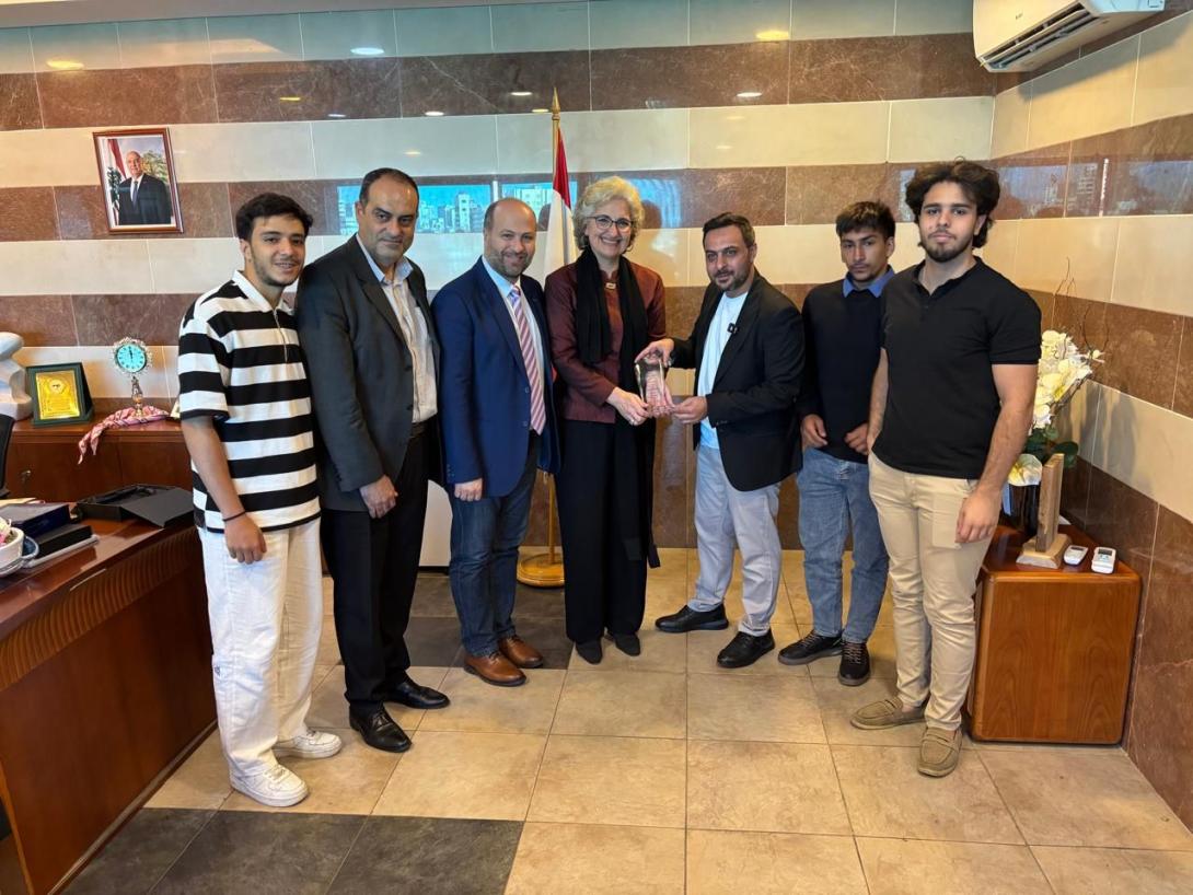 ثم قدمت الوزيرة للأستاذ أحمد المصري درعا تكريمية فيما قدم هو إليها الميدالية الذهبية التي حصل عليها وقررت وضعها في مكتب الوزيرة لتكون محط تقدير مستمر .